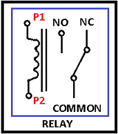 Relay is an electrically operated switch work on electro-magnetism principal here you see the block diagram of relay. Here you see three pin named NC, NO and COMMON. Now NC stands for normally closed, NO for normally open and common stands for common pin for connecting NC or NO. P1 and P2 pin are for providing control signal to relay.